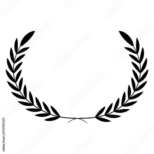 Vector illustration. Black round branches with leaves collection. Circle winner trophy decor elements for award banner, emblem, label, badge. Winner emblem, olive branch silhouette collection. Vector