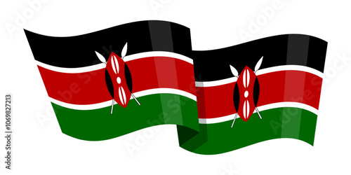 Vector illustration of wavy Kenya flag on transparent background