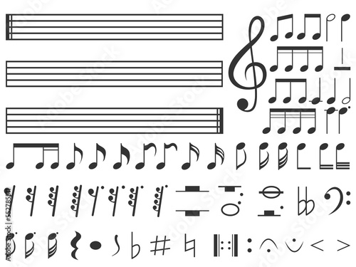 Vector large set of musical notes. A design element for a website, applications. The concept of music and playing musical instruments