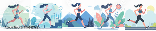 Vector of a woman using a treadmill.