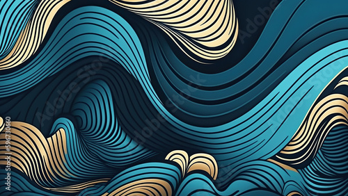 Vector Sea Patterns in Minimalist Blue. Abstract Graphic Design. Generative AI