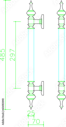Vector sketch illustration of classic minimalist factory door handle type detail design