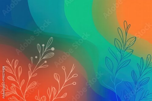 Vibrant and trendy flat design background in cartoon style, Features bold, vivid colors with a gradient palette (blue, green, teal and orange) and abstract geometric shapes