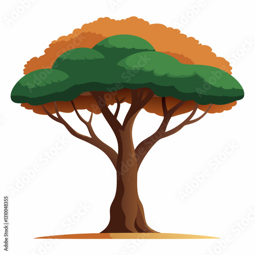 Vibrant autumn trees with green and orange foliage against a white background