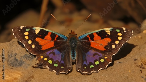 Vibrant Colorful Butterfly on Sand Ground, Detailed Wings, Insect Macro Photography