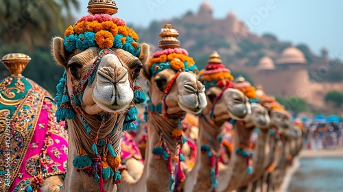 Vibrant Decorated Camels in India Stunning Desert Scene