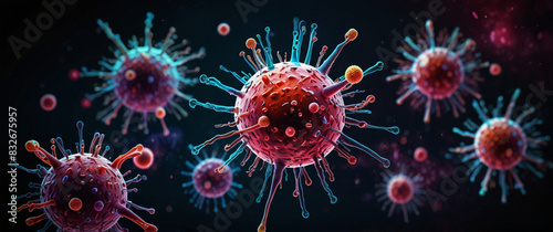 Vibrant Digital Art Depicting the Clash of Bacteria and Viruses on a Dark Background, Highlighting Stealthy Infection Spread