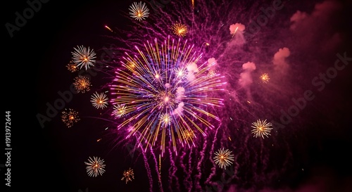 Vibrant fireworks display in the night sky