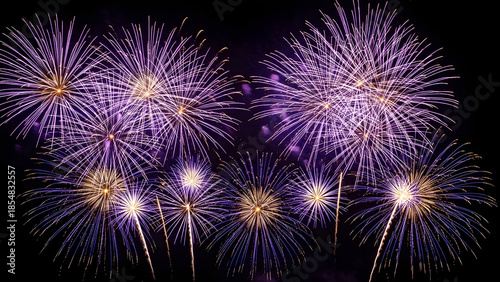 Vibrant fireworks exploding in the night sky