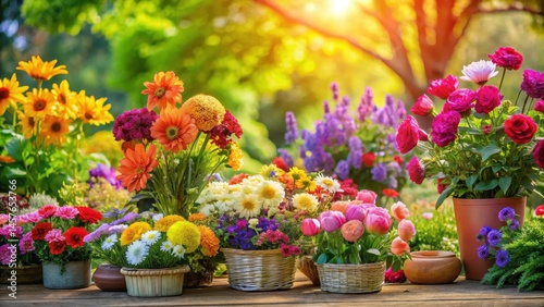 Vibrant floral arrangements in a colorful garden, flower, garden, flower, garden, plants,colorful flowers, colorful