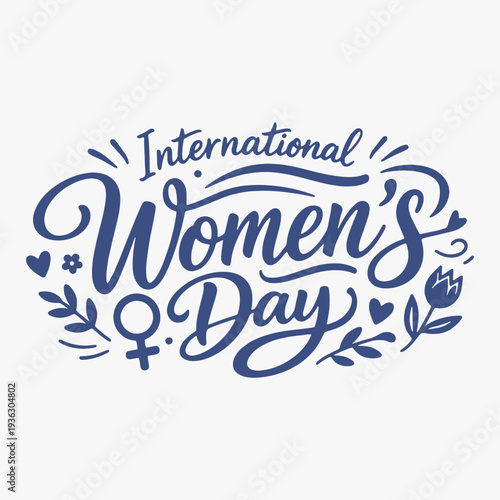 Vibrant hand-drawn International Women Day lettering with decorative elements