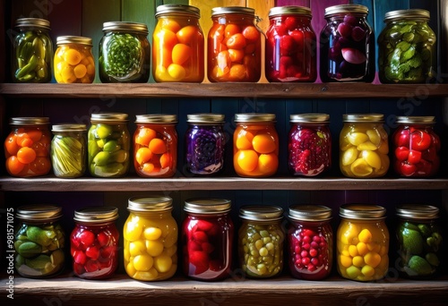 vibrant jars filled colorful pickled fruits vegetables displaying rainbow tasty preserves bright cheerful arrangement, lgbtq, lgbt, pride, love, equality
