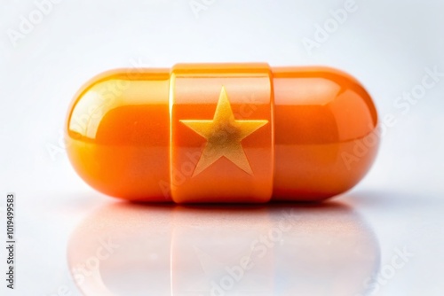 Vibrant Orange Pill with Star Design on a Clean White Background for Health and Wellness Themes