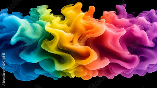 Vibrant rainbow ink swirls, abstract colorful fluid art, dynamic design element, perfect for backgrounds or artistic projects.