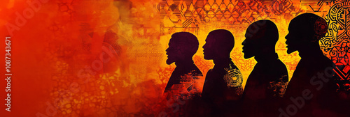 Vibrant silhouettes against abstract african-inspired background in warm tones
