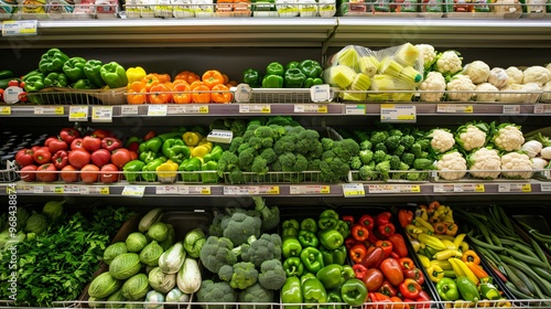 Vibrant Supermarket Shelf Brimming with Colorful Vegetarian Produce