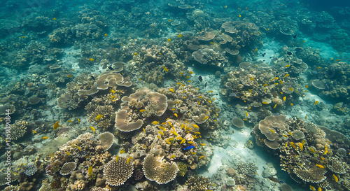 Vibrant Underwater Coral Reef Scene with Yellow Fish
