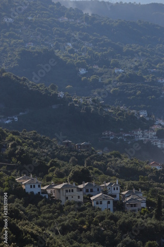 view of Greek village from the top of the mountain