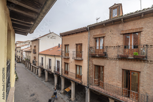 Views of facades of very old homes on the main street of Alcalá de Henares, Madrid