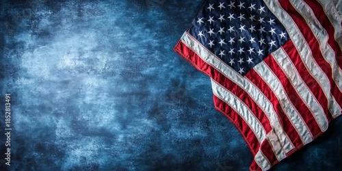 Vintage American Flag Waves Proudly Against Navy Grunge Background, Symbolizing Patriotism