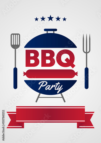Vintage BBQ Party Flyer With Grilling Icons and Decorative Elements Illustration. Perfect for party invitations, promotional materials, or posters related to BBQ or grilling gatherings