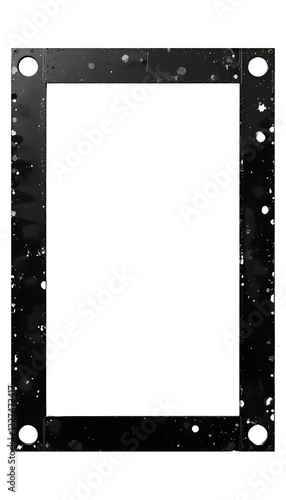 Vintage black movie frame with sprocket holes, isolated on a white backdrop