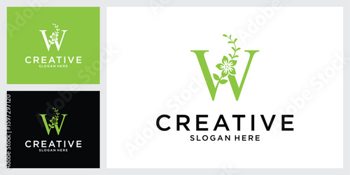 W initial letter logo design vector with leaf.