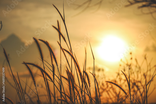 Warm Golden Hour Wheat Field Silhouette with Setting Sun Landscape