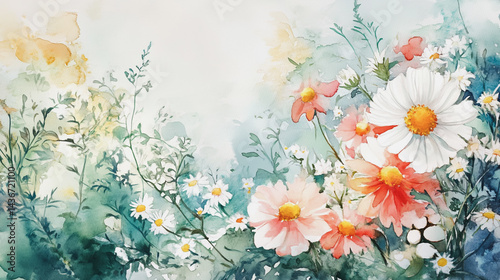 watercolor botanical Chamomile flowers texture template background.Elegant wedding invitation card background . Minimal hand painted Design for wedding or Valentine's Day