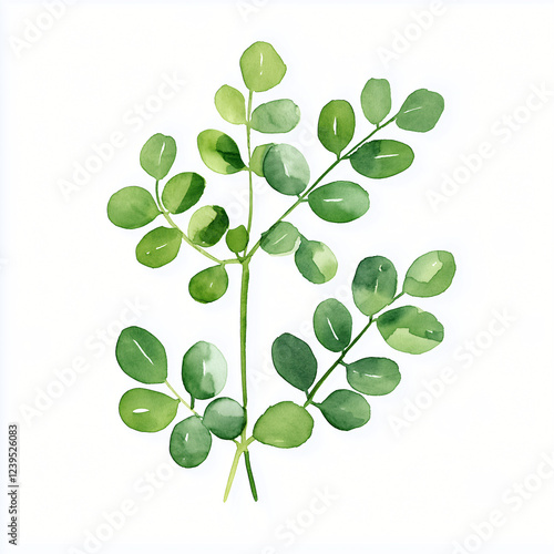 Watercolor hand-painted moringa branch painting illustration isolated on a white background, moringa illustration, AI
