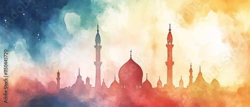 Watercolor Illustration of a Picture For Ramadan Holy Month, with copy space
