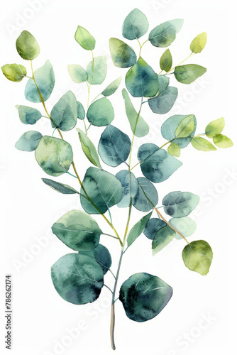 Watercolor painting of elegant eucalyptus branches emphasizing beauty and serenity.