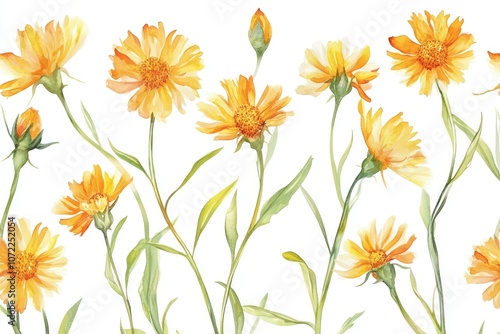 Watercolor Safflower Flowers Illustration on White Background with Botanical Elements