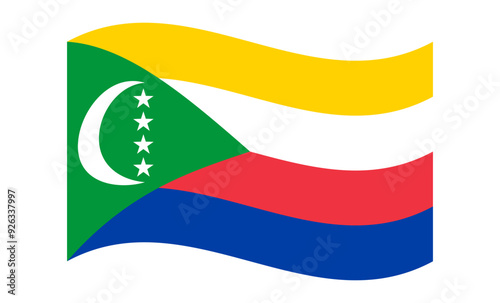 Wavy flag of Comoros, isolated on transparent background. Flag of the Union of the Comoros. Vector illustration