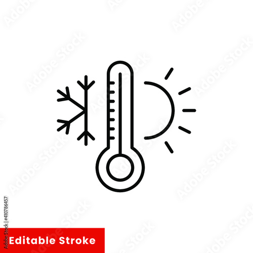 Weather temperature thermometer line icon. Outline style sign for web and app. Thermometer with cold and hot symbol. Vector illustration on white background. Editable stroke EPS 10