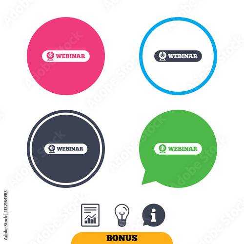Webinar web camera sign icon. Online Web study.