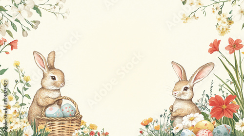 Whimsical Easter Greeting Card with Bunnies and Egg Baskets