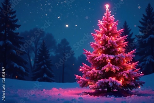 White and pink fairy lights wrapped around a tall fir tree, white fairy lights, winter wonderland, pink fairy lights