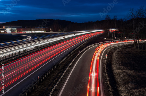 white and red car light trails on motorway junction