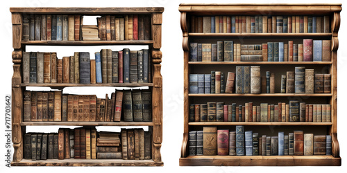 White Bookshelf Set Isolated on Transparent or White Background, PNG