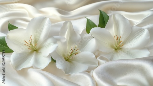 White lilies satin fabric background elegance wedding