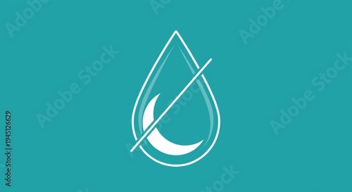 White outline icon of a water drop and a crescent moon with a diagonal strike through symbol on a teal blue background for night mode.