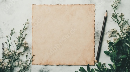 White paper and flower layout in a romantic style, ideal for crafting heartfelt messages, invitations, or delicate stationery designs