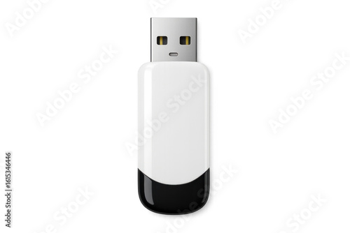 White usb flash drive with metallic connector displaying portable storage technology, positioned against transparent backdrop