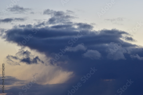winter snow clouds at sunset