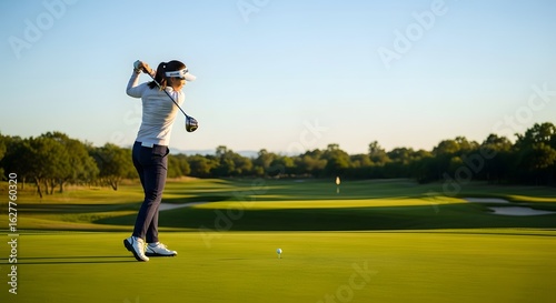 Woman Golfer Executing Perfect Swing on Sunny Course