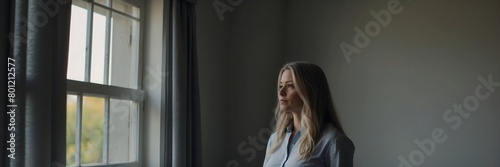 woman looking through window