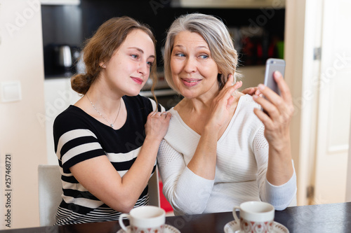 Women taking selfie at home
