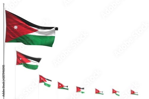 wonderful Jordan isolated flags placed diagonal, photo with soft focus and place for content - any feast flag 3d illustration..