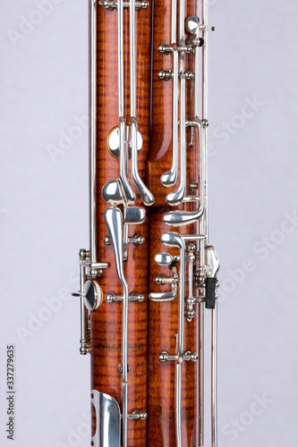 Wooden bassoon isolated on a white background. Music instruments.